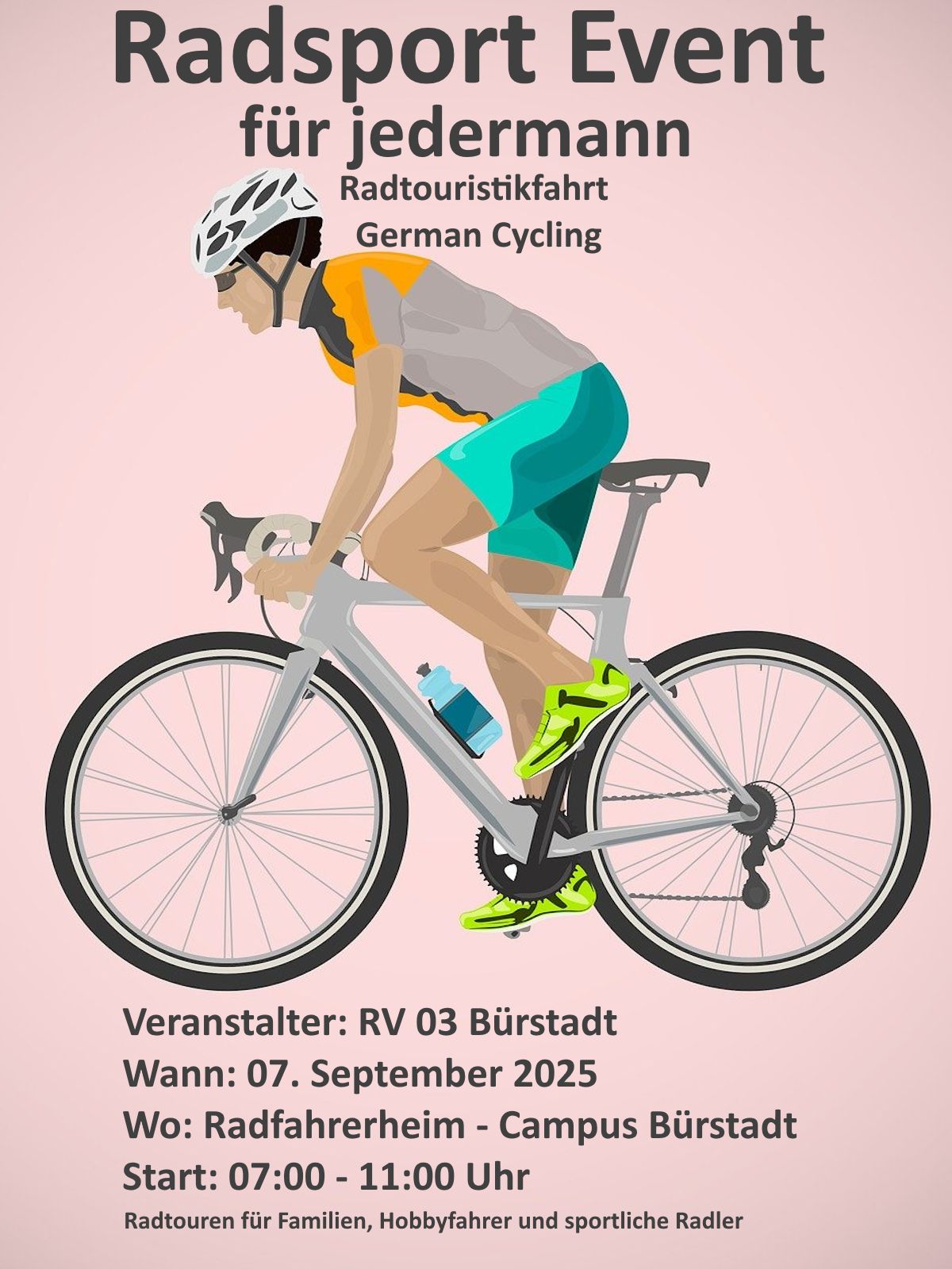 07.09.2025 Radsport Event für Jedermann Radfahrerheim Campus Bürstadt Radtouristik